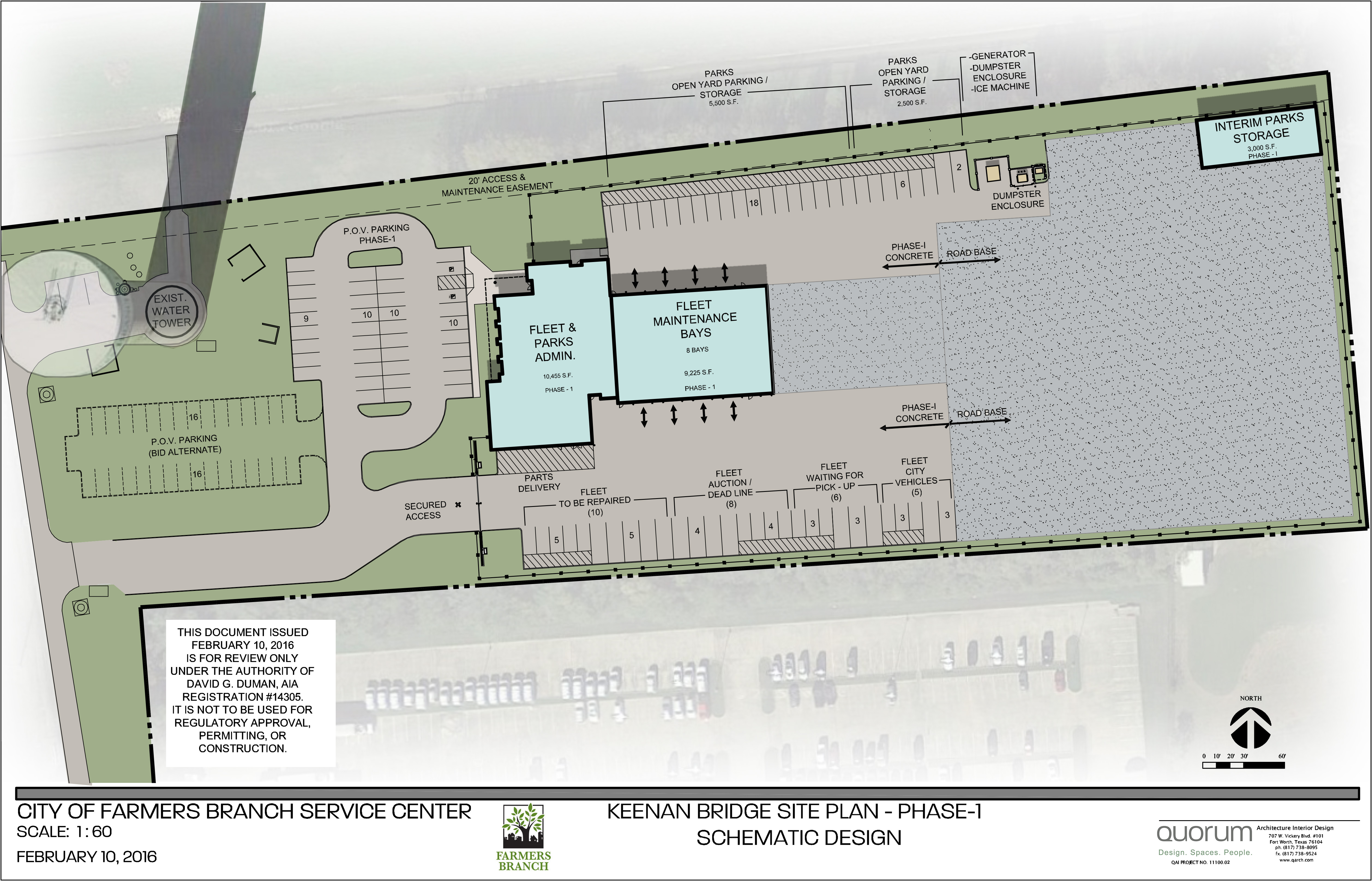 Quorum Architects, Inc. was selected as qualified architectural company during the Space Needs and Building Assessment phase of this project and has also completed the preliminary site plan development. The information gathered by Quorum Architects will be used in the preparation of the final design and construction plans.
