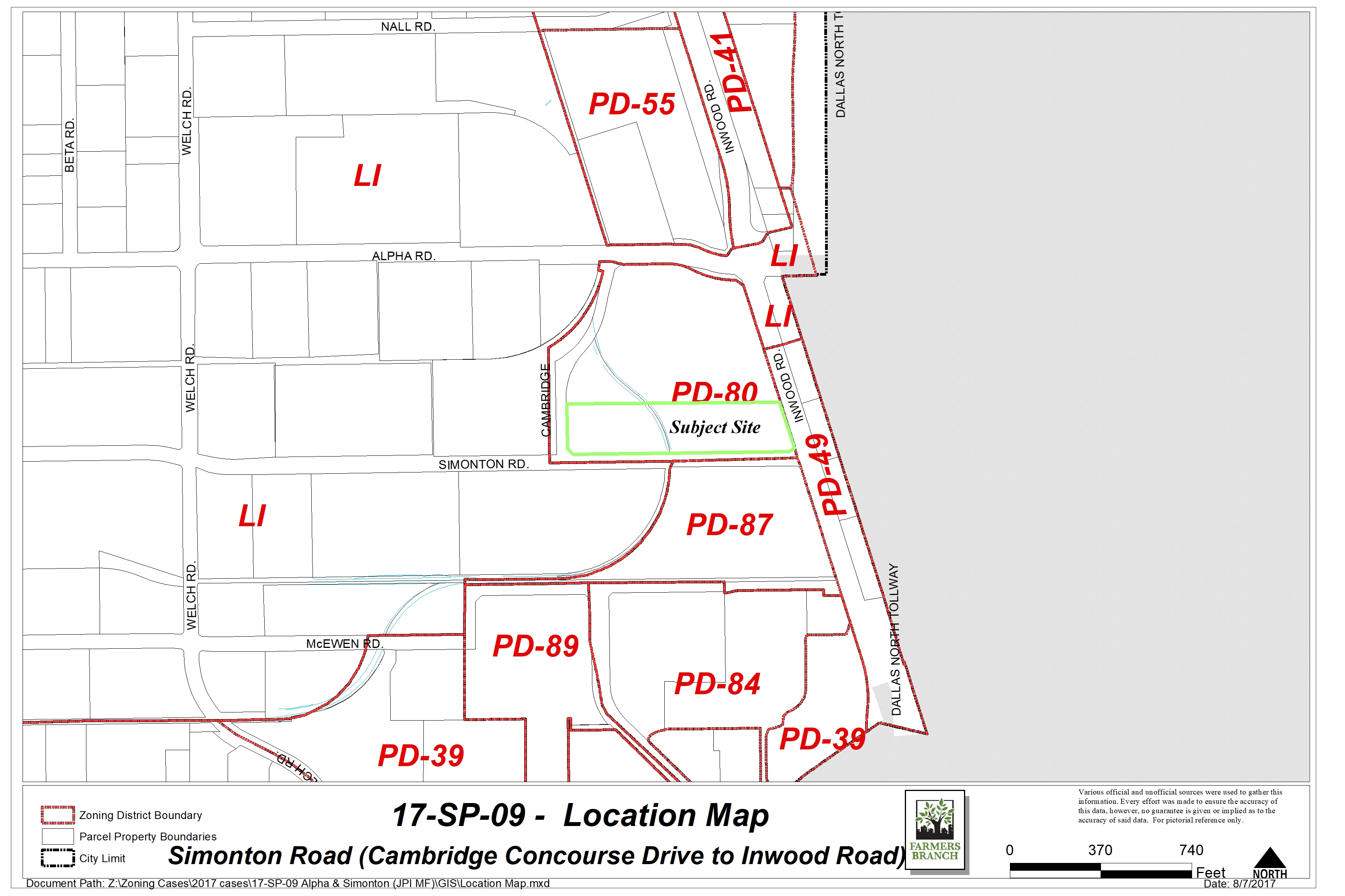The applicant, JPI is proposing to develop a multifamily community containing 408 dwelling units on the 0.64-acre site along Simonton Road between Cambridge Concourse and Inwood Road. The property is located within Planned Development No. 80 (PD-80).