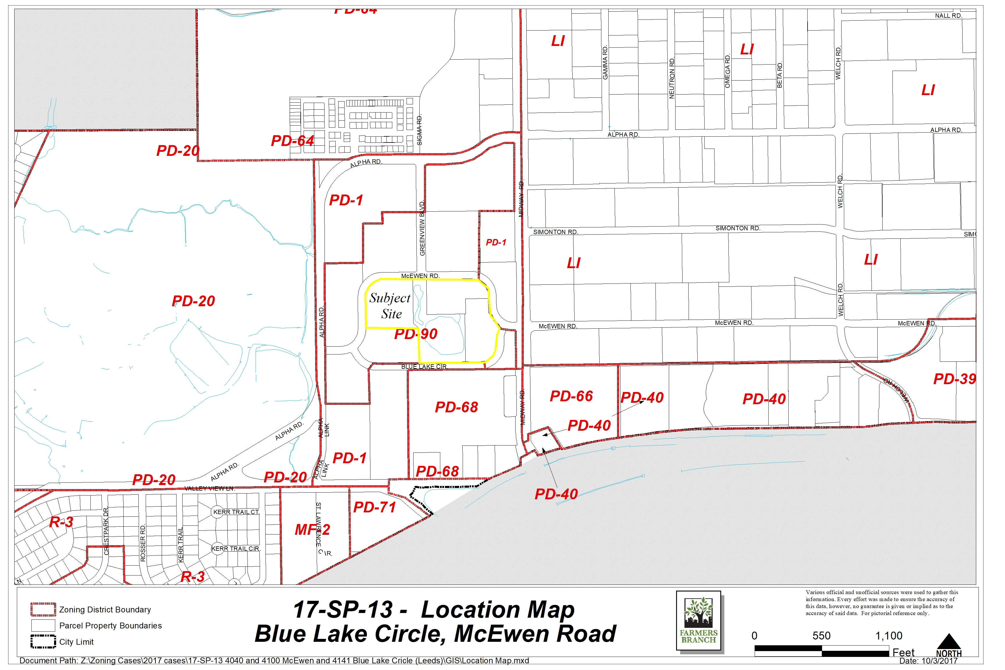 The applicant, Leeds Real Estate Services is proposing to develop Midway Urban Village, a mixed-use community, on the site bordered by Blue Lake Circle and McEwen Drive. The Detailed Site Plan represents Phase One of this development. The subject site is a portion of Tract 3 within Planned Development District No 90 (PD-90).
